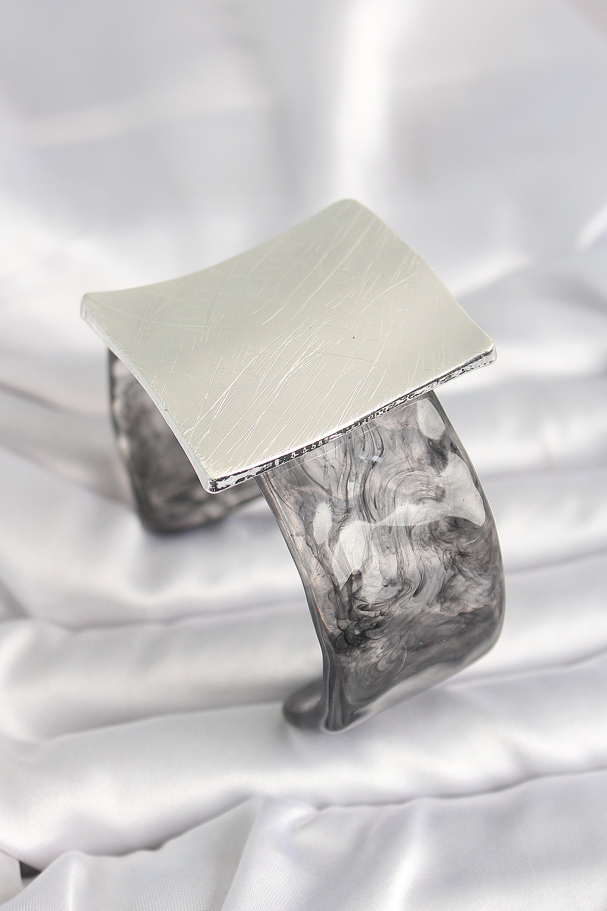 Siyah Mermer Desen Akrilik Plastik Gümüş Kare Plaka Model Vintage Kadın Bilezik - TJ-BB6671