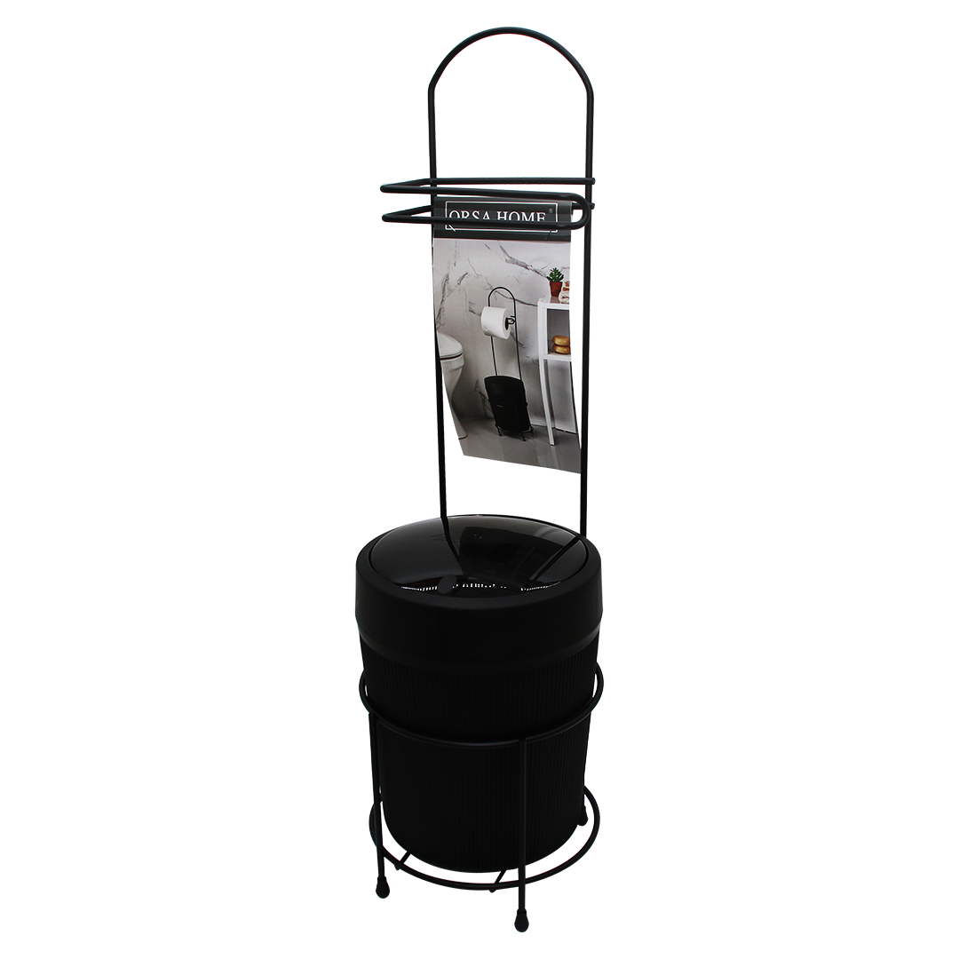 SİYAH METAL AYAKLI WC KAĞITLIK YUVARLAK PLASTİK KOVALI