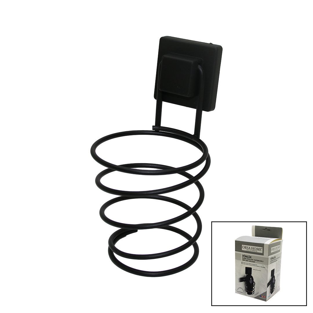 Si̇yah Metal Fönlük Fön Maki̇ne Askısı Kare Macun Yapışkanlı10X11X15Cm