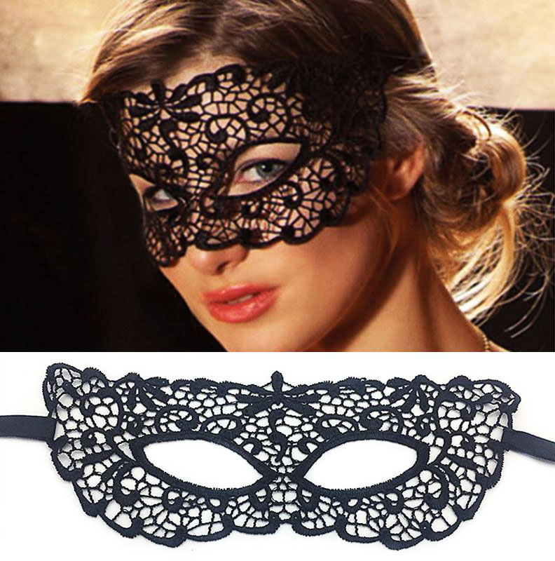 Siyah Renk Dantel İşlemeli Örgü Parti Maskesi Model 7