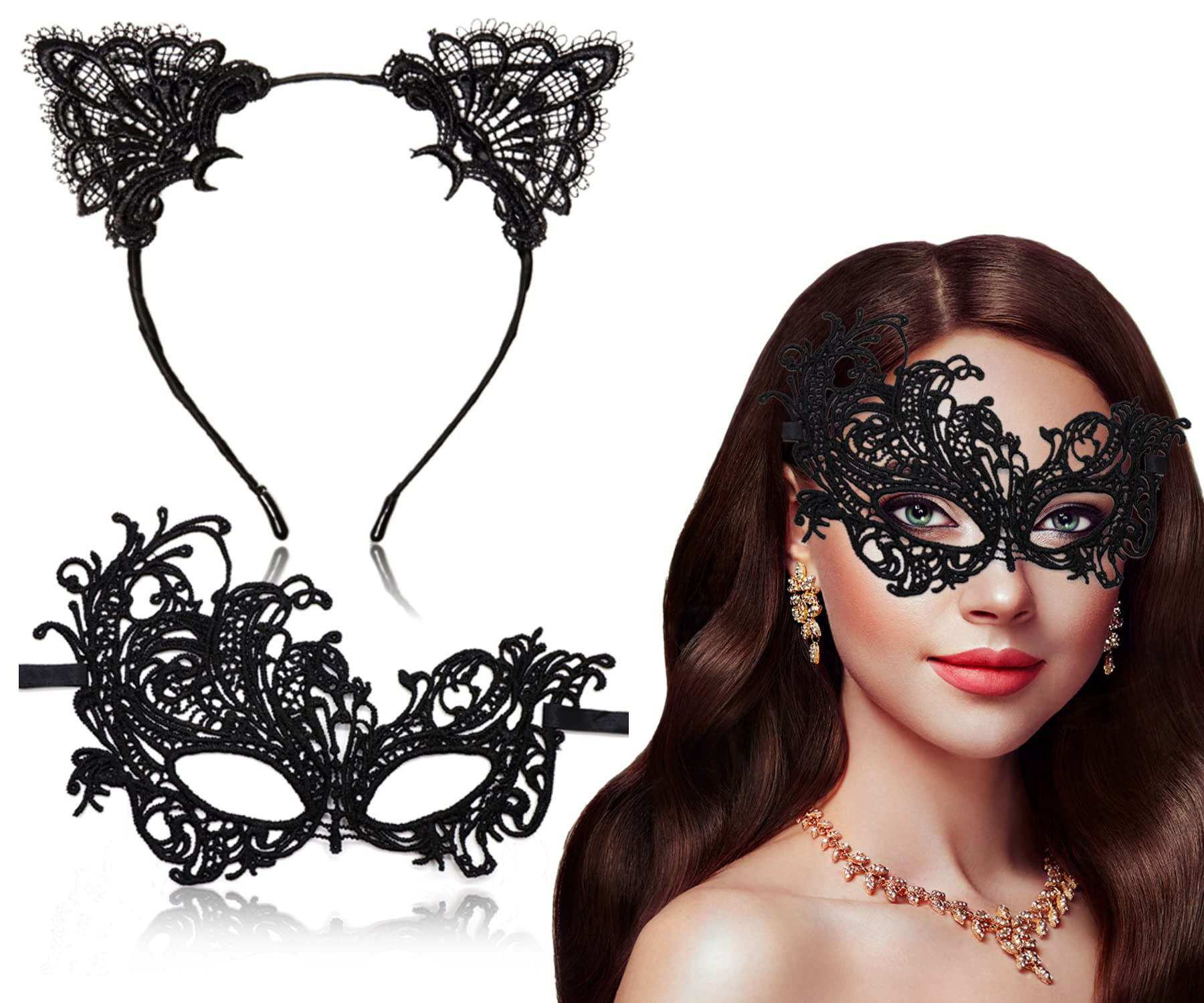 Siyah Renk Dantel Maske ve Dantel Taç Seti