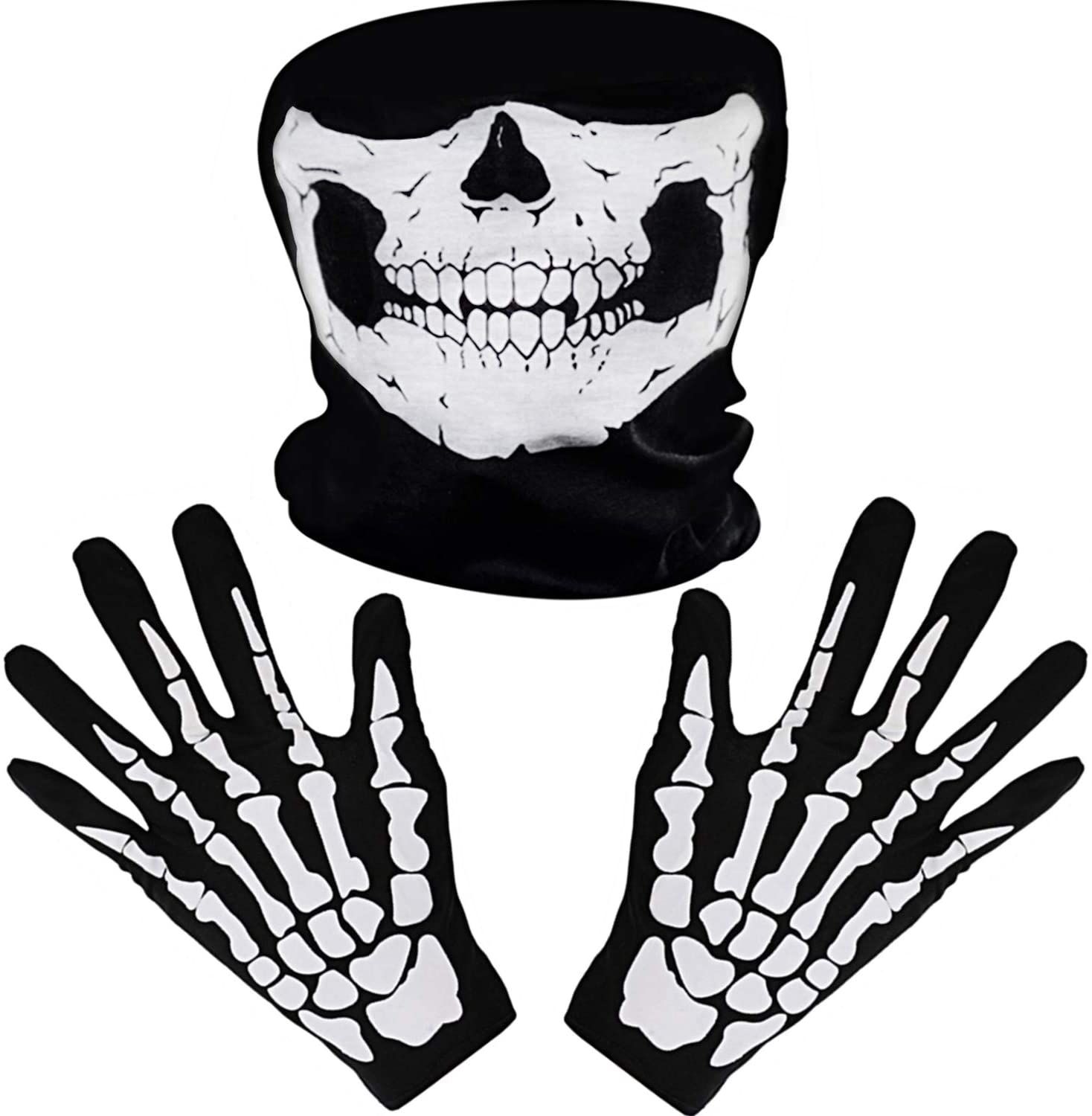 Siyah Renk Dikişsiz Çok Fonksiyonlu Çene Kafatası Yüz Maskesi Baf ve İskelet Eldiven Seti