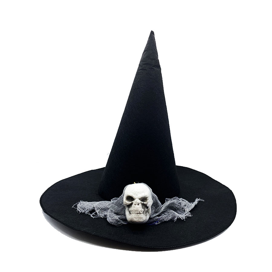 Siyah Renk Kuru Kafa Görselli Cadı Şapkası