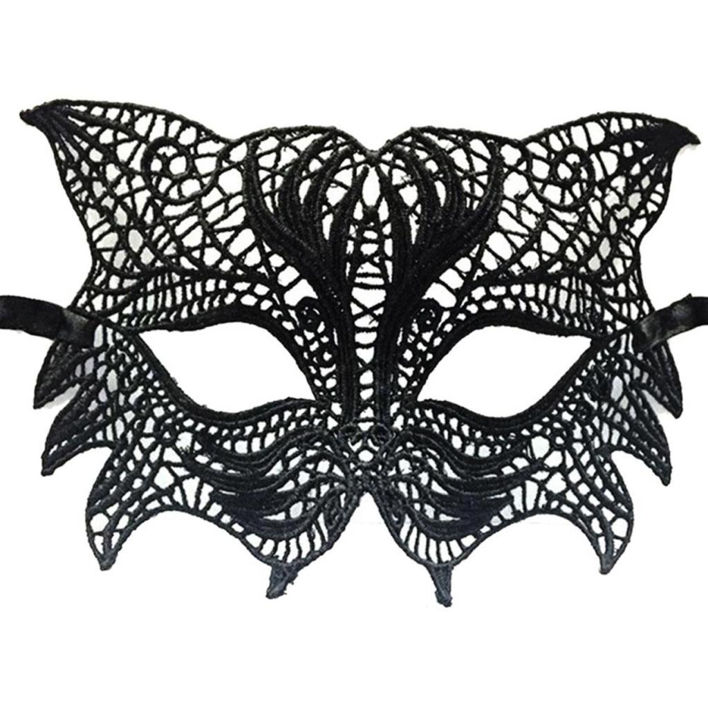 Siyah Renk Kedi Model Dantel İşleme Parti Maskesi 8 No
