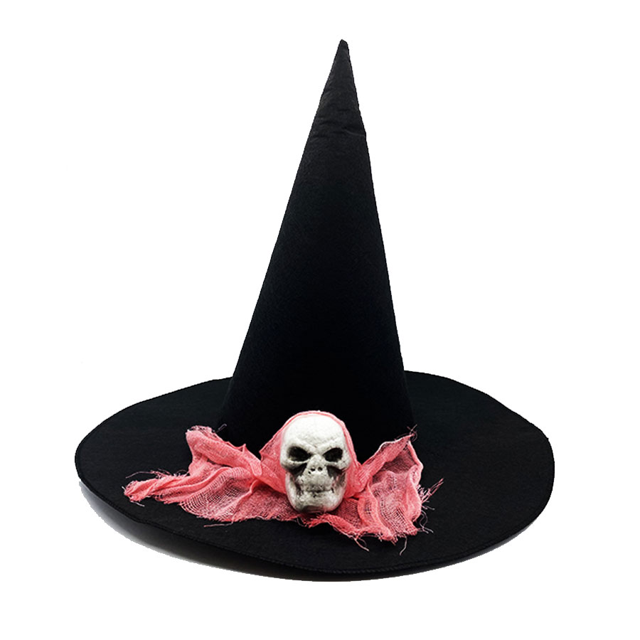 Siyah Renk Pembe Duvaklı Kuru Kafa Temalı Cadı Şapkası 35x38 cm