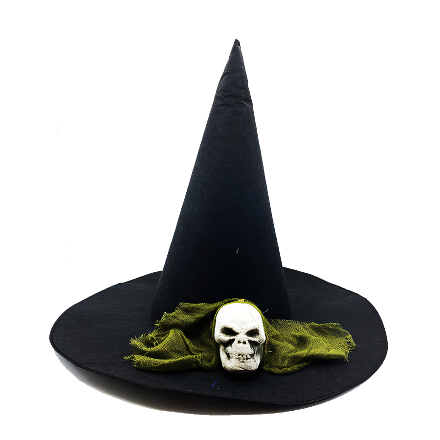 Siyah Renk Kuru Kafa Görselli Cadı Şapkası