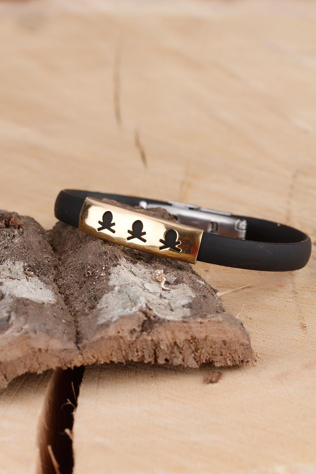 Siyah Silikon Sarı Renk Çelik Aksesuar Kuru Kafa Detaylı Erkek Bileklik - TJ-EB930