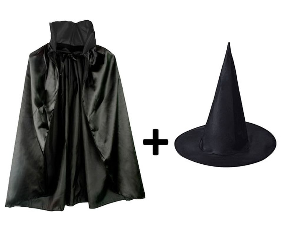 Siyah Pelerin Ve Siyah Cadı Şapkası Seti