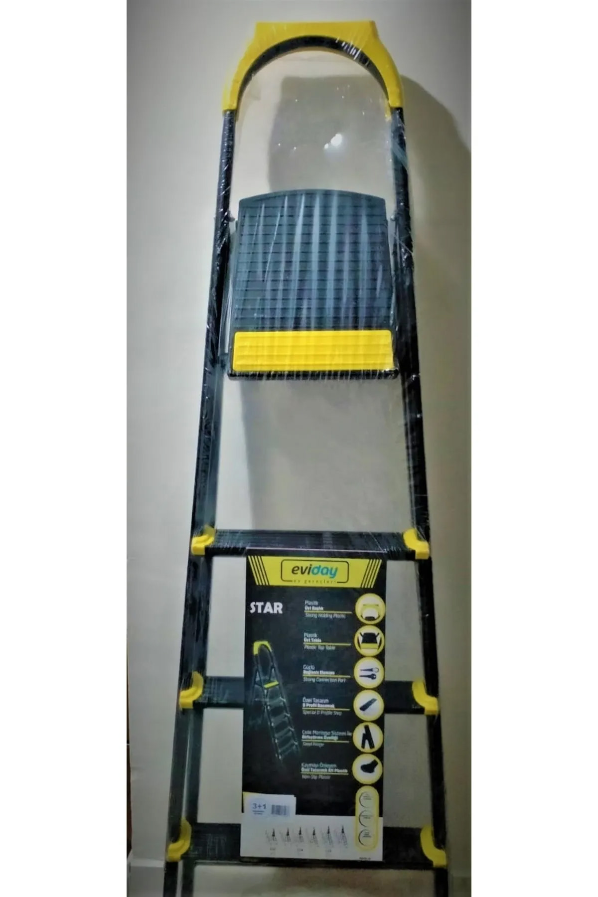| Her eve lazım, tasarım ve şıklığıyla evinizde, ofisinizde rahatsızlık vermeyecek bir görselliğe sahip. Hardal sarısı kenar kaplamalarıyla oldukça modern bir görsele sahip.Basamaklar kaymaya karşı özel tasarımlı ve tırtıklı, ergonomik, ortalama boya sahip yetişkin bir birey için 284 cm yüksekliğe kadar yüksekliğe erişim imkanı sunan ürün zemine temas eden ayak kaplamasında kaymaya karşı güçlendirilmiş plastik ayaklar içermektedir. Çelik menteşesistemi, özel tasarım profil basamaklar,güçlü bağlantı elemanları, plastik üst başlığıyla klasik merdivenlerin çok ötesinde bir fayda sunuyor. |
