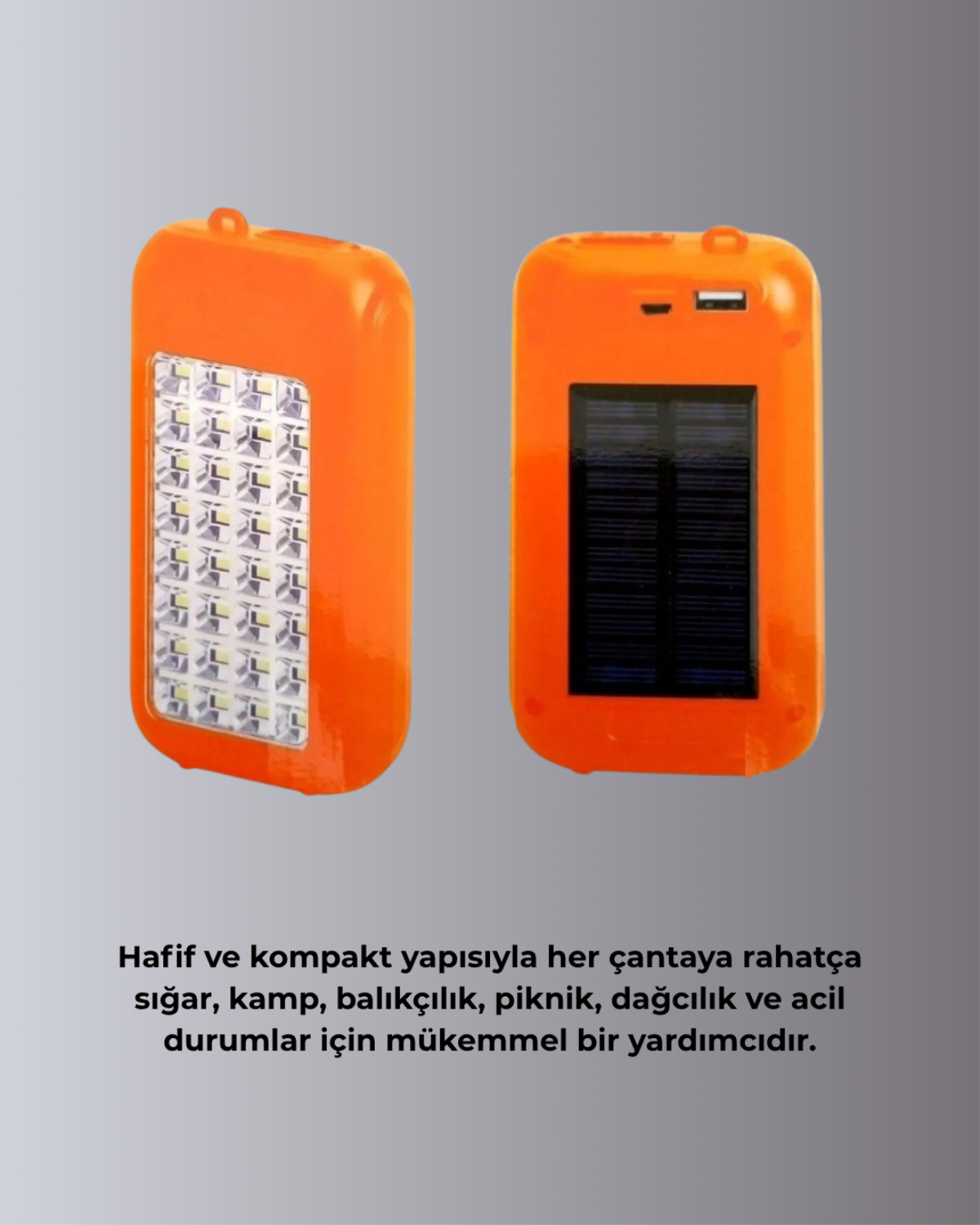 Suya Dayanıklı Güneş Paneli Destekli Powerbank ve Işıldak