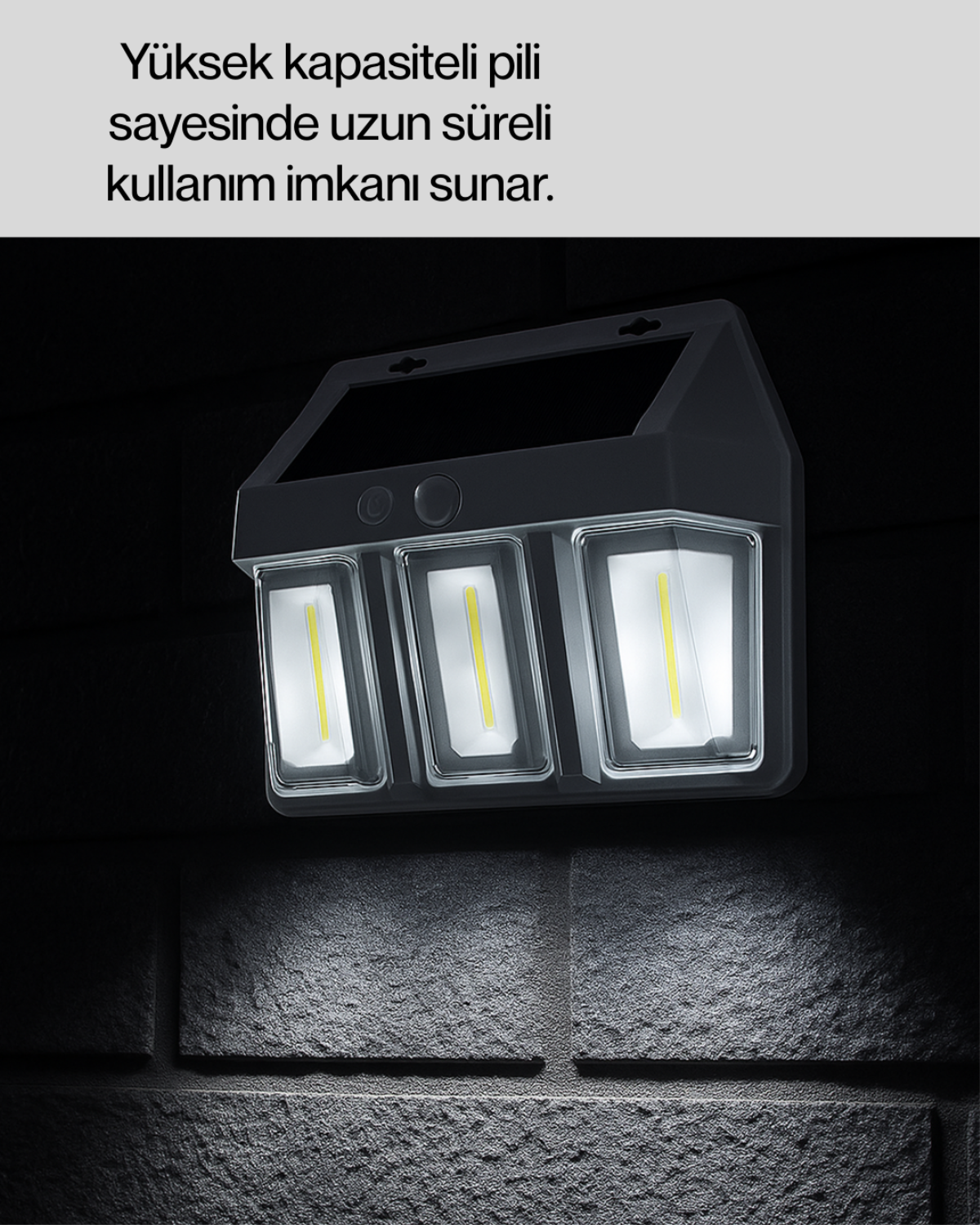 BK-618-3 Solar Duvar Lambası, dış mekânlarda modern, ekonomik ve güvenli bir aydınlatma çözümü sunar. Güneş enerjisiyle çalışan paneli sayesinde elektrik tesisatına gerek duymadan kurulabilir. Gün boyunca güneş ışığını depolayarak gece boyunca ışık sağlar. IC sensör teknolojisi sayesinde gün ışığına duyarlı olarak otomatik açılıp kapanır. PIR hareket sensörü, 120° açıyla hareketi algılar ve güçlü ışık sağlar. Bu, özellikle güvenlik açısından avantajlıdır. Üç farklı ışık modu ile kullanım amacınıza uygun olarak seçim yapabilirsiniz. ABS malzemeden üretilmiş gövdesi dayanıklı ve uzun ömürlüdür. IP65 sertifikası sayesinde yağmura, kara ve neme karşı yüksek dayanıklılık gösterir. Paket içeriğinde duvara montaj için vida seti ve kullanım kılavuzu bulunmaktadır. Bahçe, garaj, balkon, veranda ve duvar gibi pek çok alanda kullanılabilir. Hem güvenlik hem de dekoratif aydınlatma için ideal bir üründür. Enerji tasarruflu yapısıyla elektrik faturalarınızı azaltırken çevre dostu bir kullanım sağlar.