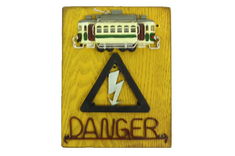 Tabela Tehlike Tranvay Figürlü Vintage Kapı Yazısı Hediyelik