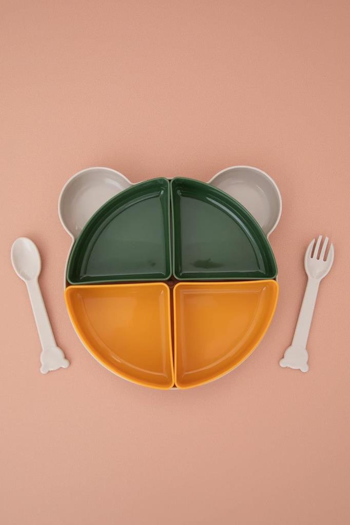 1 Adet Tabldot Mama Tabağı Çıkarılabilir Kaseli -Tepsili 4 Bölmeli Ayıcık Figürlü Çatal Kaşıklı Beslenme Kabı