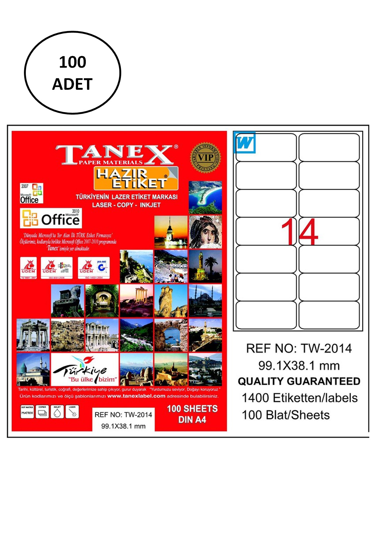 | Tanex Tw-2014 Lazer Etiket 99X38 Mm 100 Adet - Ürün Kodu : TAN.TW2014LAS10100 |