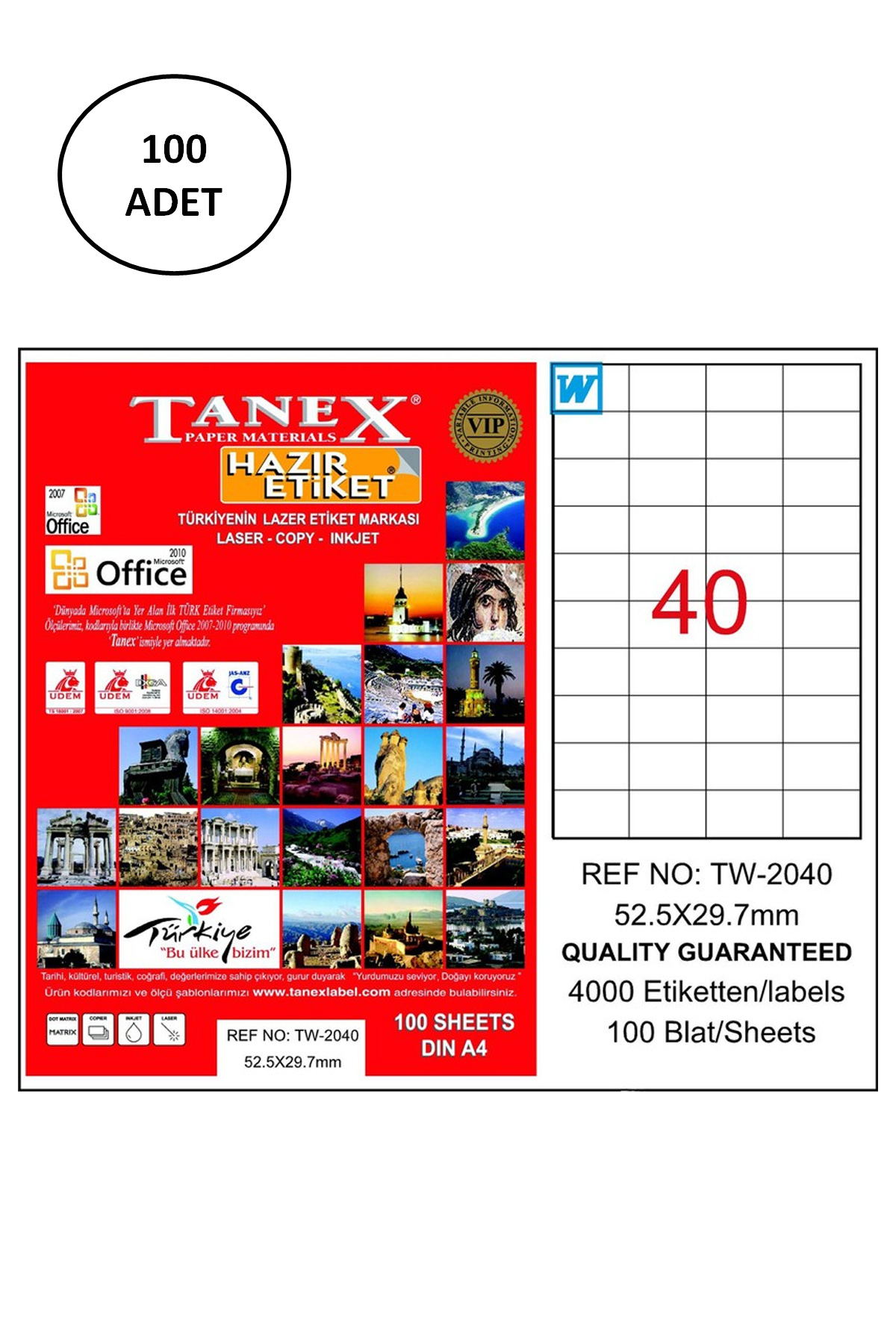 | Tanex Tw-2040 Lazer Etiket 52X29 Mm 100 Lü - Ürün Kodu : TAN.TW2040LAS10100 |