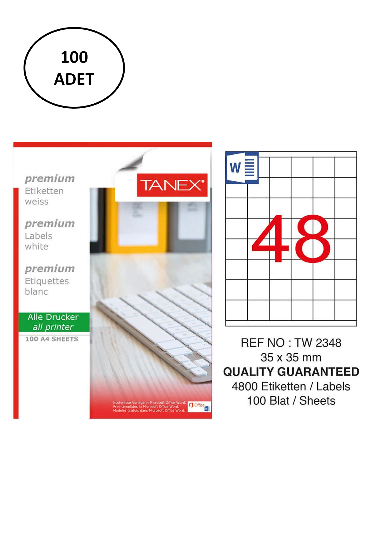 | Tanex TW-2348 35x35mm 100 Adet Lazer Etiketi - Ürün Kodu : TAN.TW2348LAS10100 |