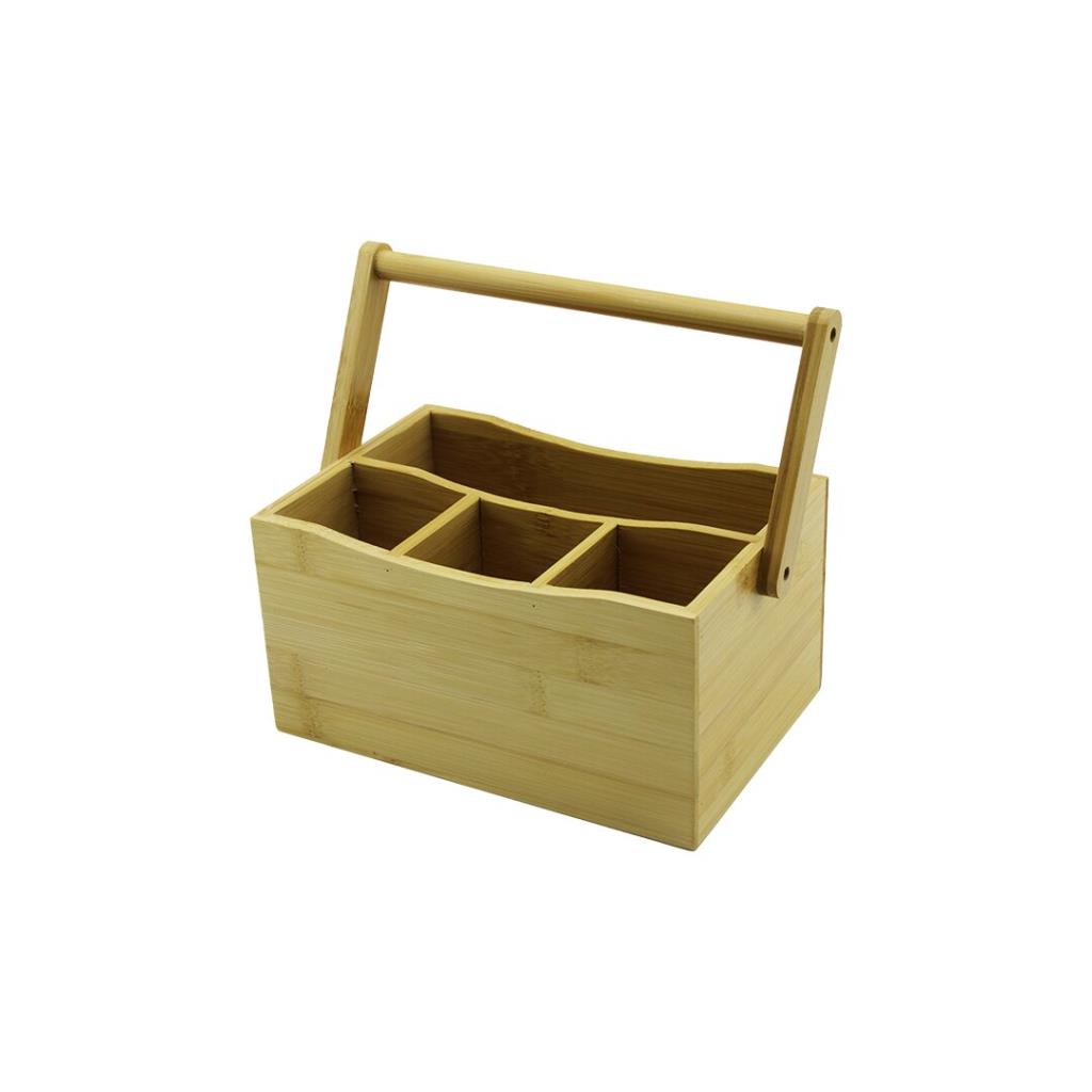 Taşıma Kulplu - 3+1 Bölmeli Tezgah Üstü Bambu - Ahşap Kaşıklık