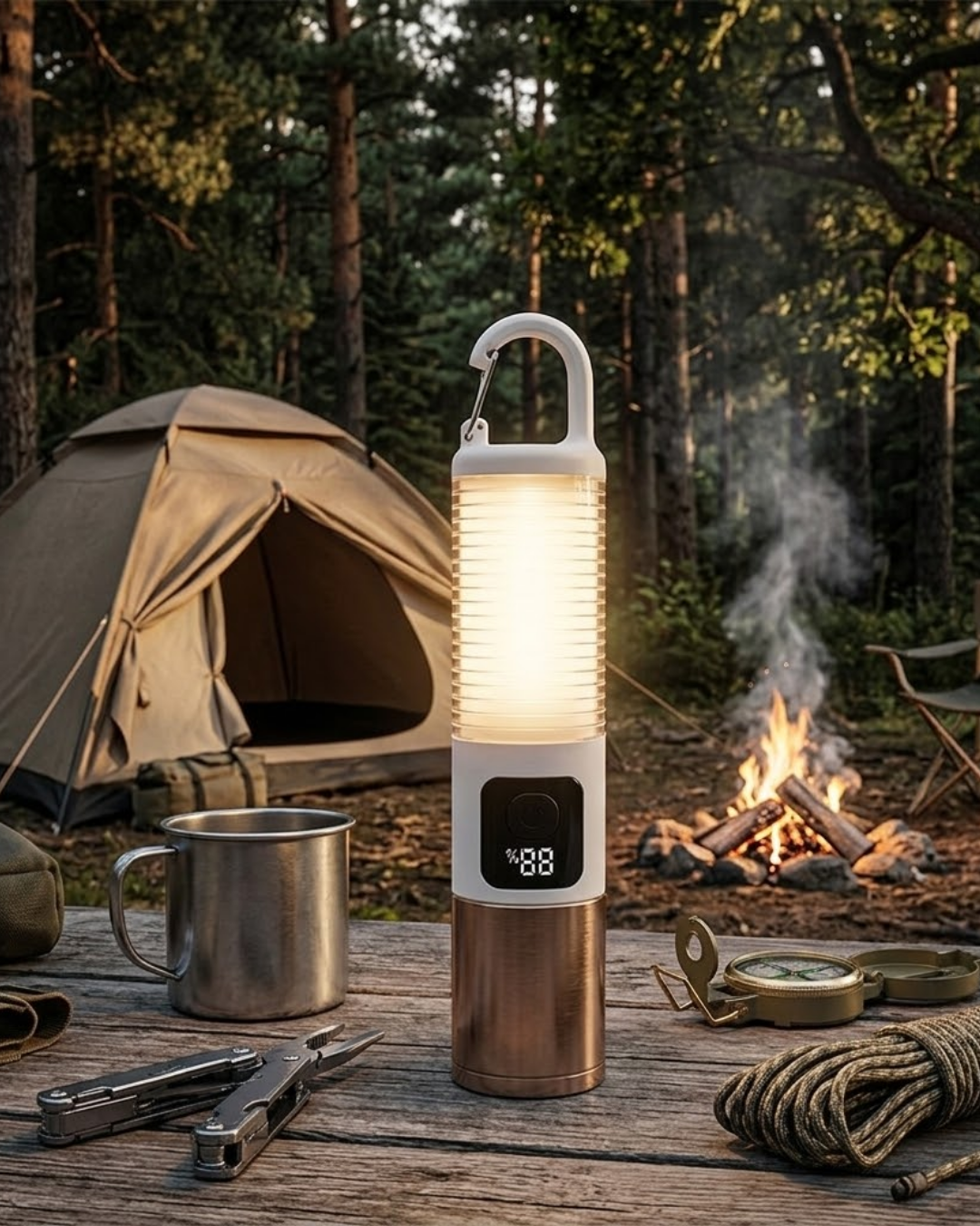Taşınabilir LED kamp feneri, güçlü ışık performansı ve pratik kullanım özellikleri ile açık hava aktiviteleri için ideal bir aydınlatma çözümüdür. Çift ışık kaynağı sayesinde hem geniş alan aydınlatması hem de daha yoğun odaklı ışık sağlayarak farklı ortamlarda rahat kullanım sunar. 500 lümen ışık gücü, karanlık ortamlarda yüksek parlaklık sağlayarak güvenli ve net bir görüş alanı oluşturur.