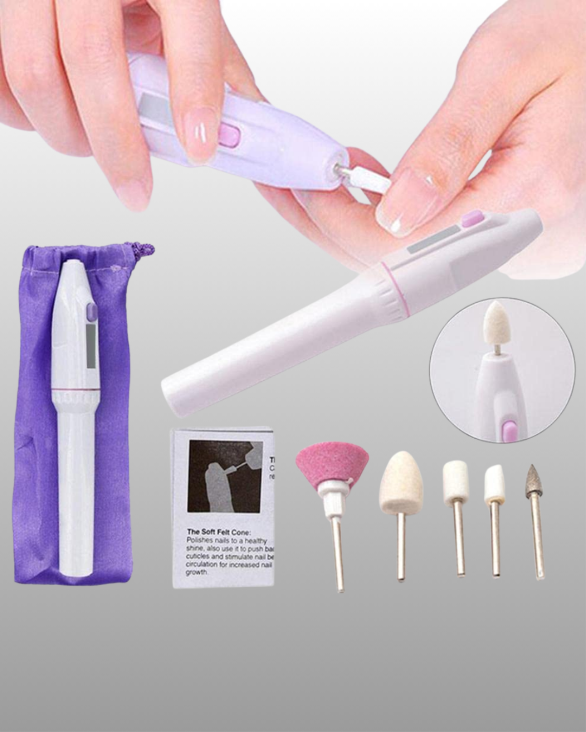 Evde veya salonda profesyonel sonuçlar isteyenler için geliştirilen Taşınabilir Manikür Pedikür Seti, güçlü performansı, düşük ses seviyesi ve zarif tasarımıyla fark yaratır. Manikür, pedikür, tırnak şekillendirme, cilalama, parlatma ve soyma işlemlerinde etkili sonuçlar sunar. Ayrıca evcil hayvan tırnak bakımı ve el sanatları yüzey parlatma gibi ek alanlarda da kullanılabilir.
