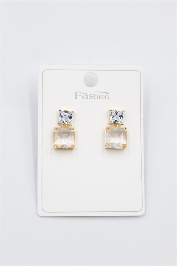 Taşlı Baget Küpe - Altın