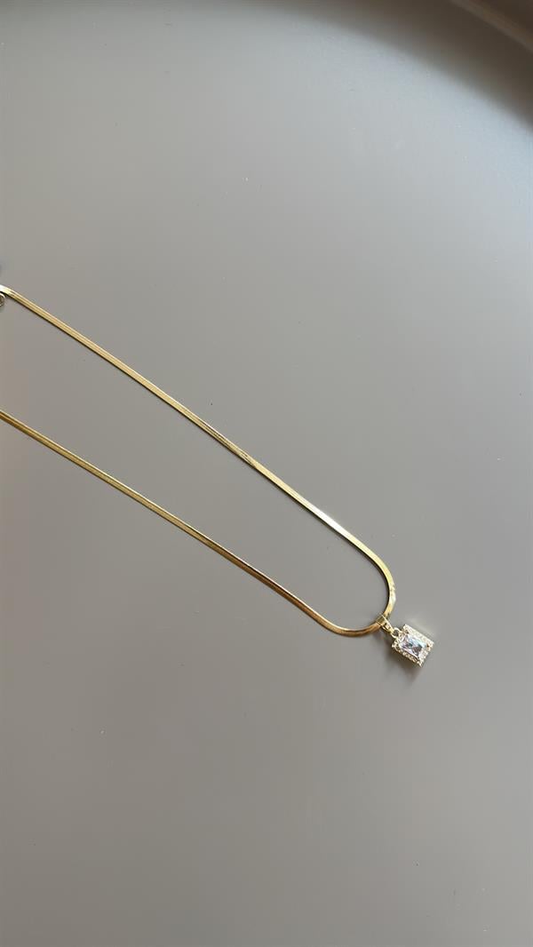 Taşlı Baget Taşlı Kolye - Altın