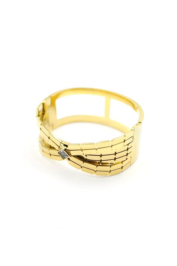 Taşlı Çelik Kelepçe Bilezik - Altın