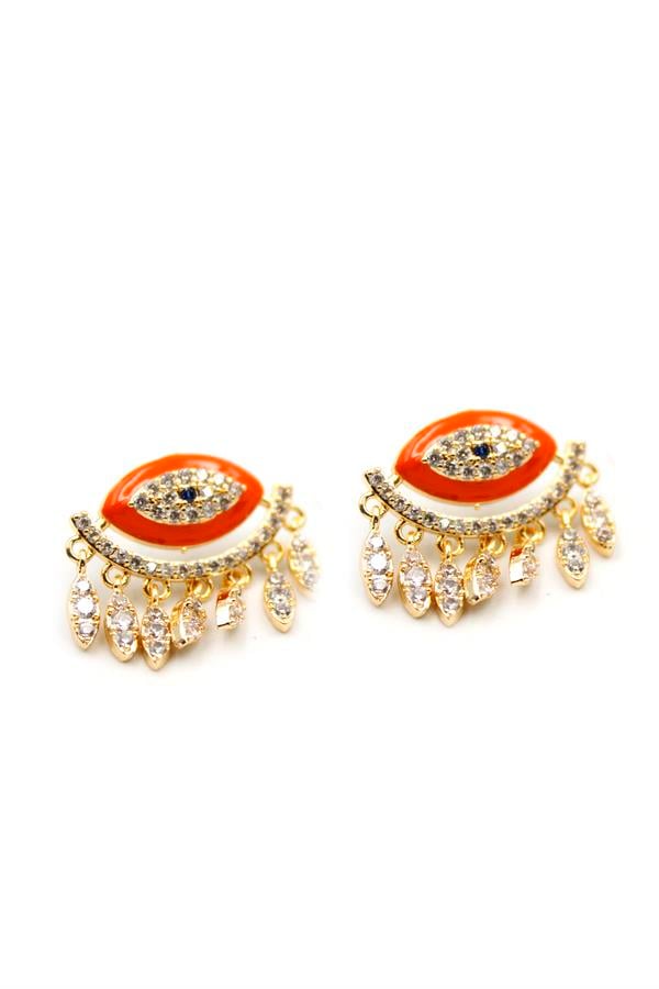 Taşlı Göz Küpe - Turuncu