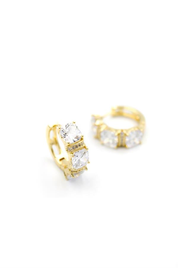 Taşlı Halka Küpe - 14K Altın