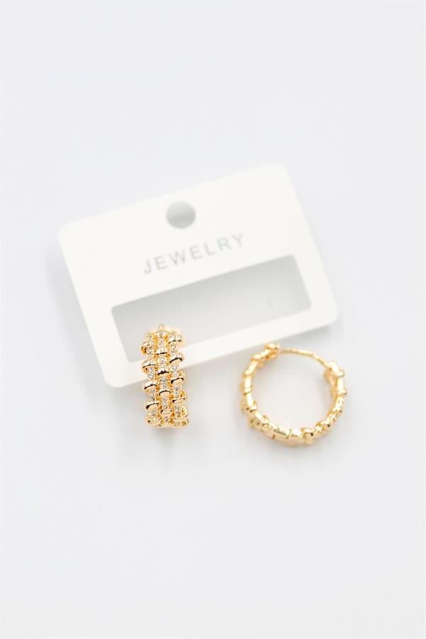 Taşlı Halka Küpe - Altın