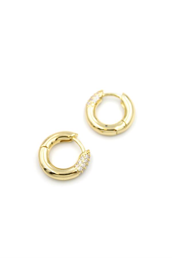 Taşlı Halka Küpe - Altın