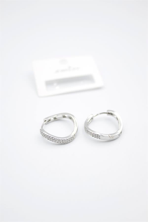 Taşlı Halka Küpe - Gümüş