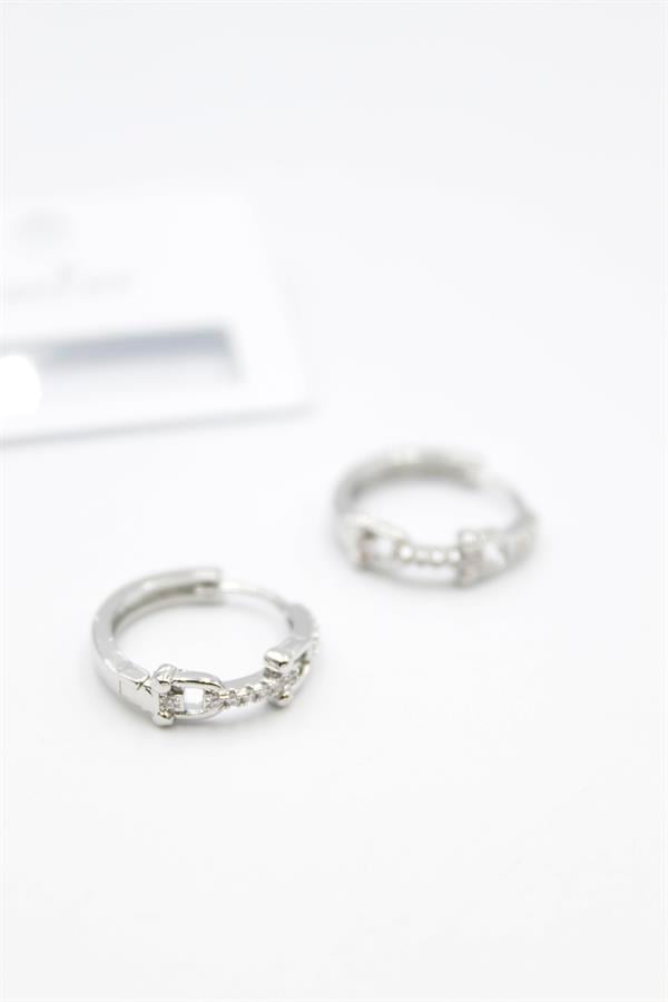 Taşlı Halka Küpe - Gümüş