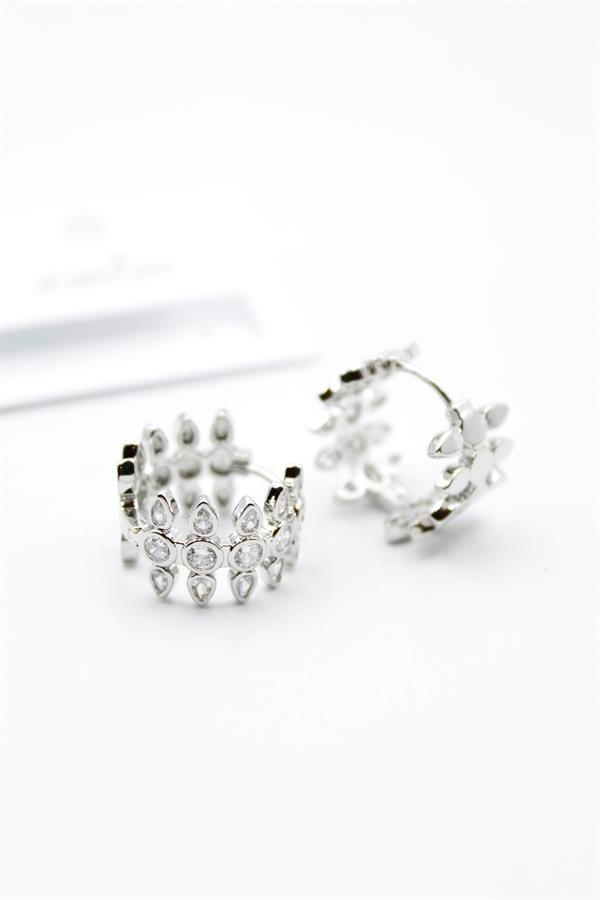 Taşlı Halka Küpe - Gümüş