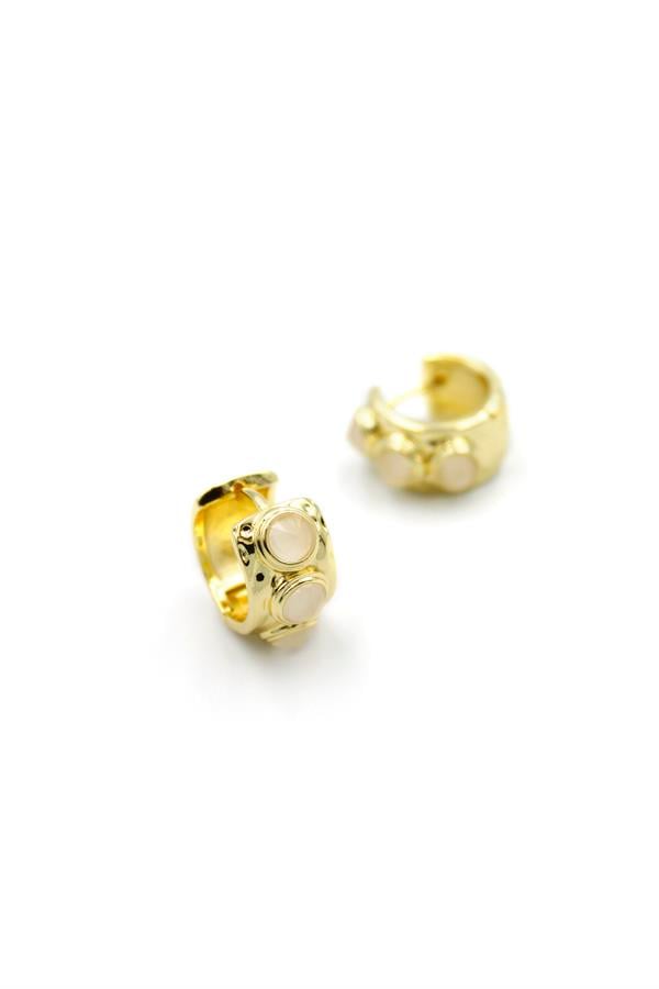 Taşlı Halka Küpe - Krem