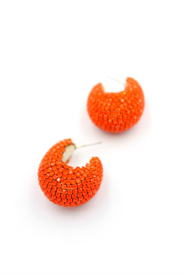 Taşlı Halka Küpe - Turuncu