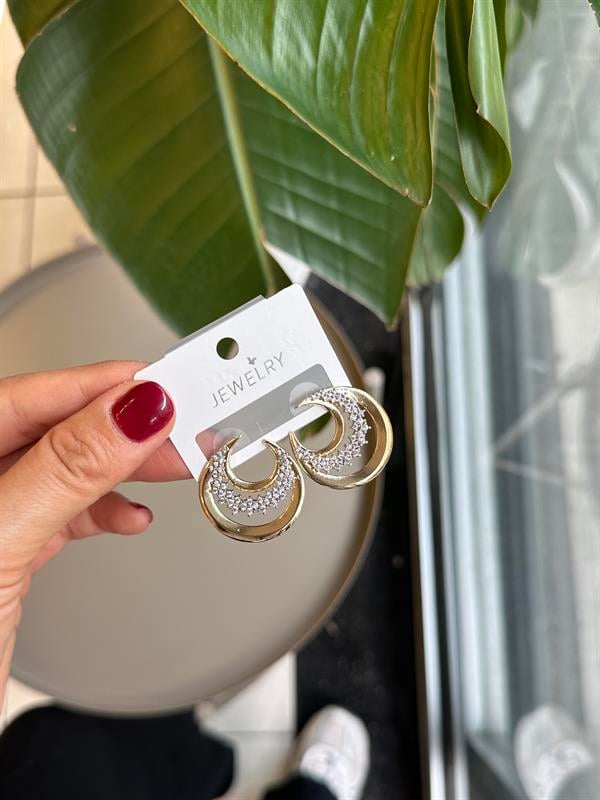 Taşlı Hilal Küpe - Altın