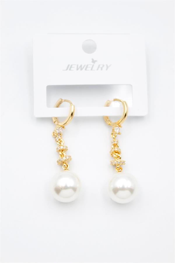 Taşlı İnci Küpe - Altın