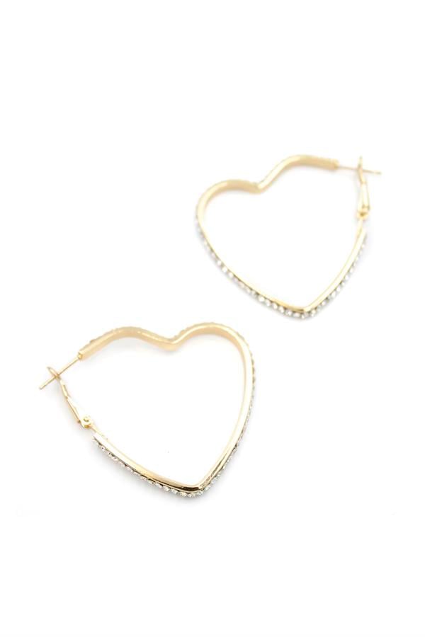 Taşlı Kalp Halka Küpe - Altın