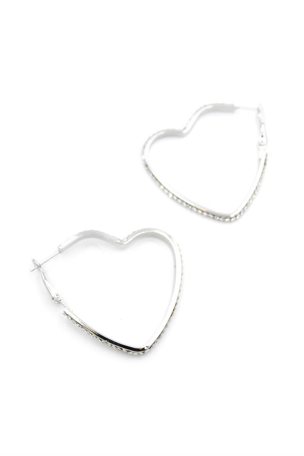 Taşlı Kalp Halka Küpe - Gümüş