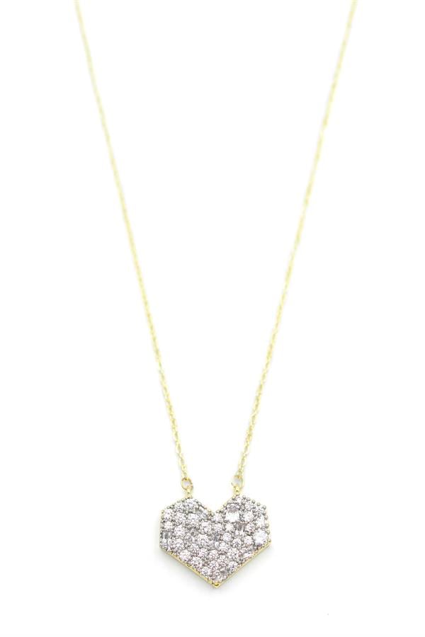 Taşlı Kalp Kolye - Altın