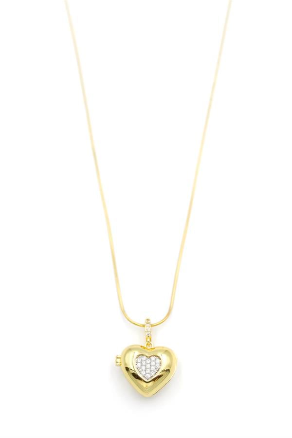 Taşlı Kalp Kolye - Altın