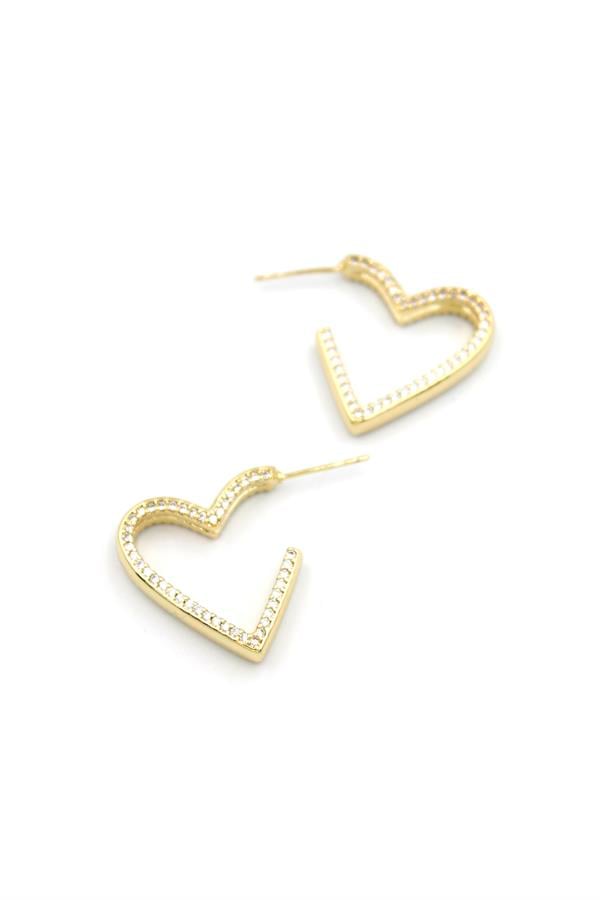 Taşlı Kalp Küpe - 14K Altın