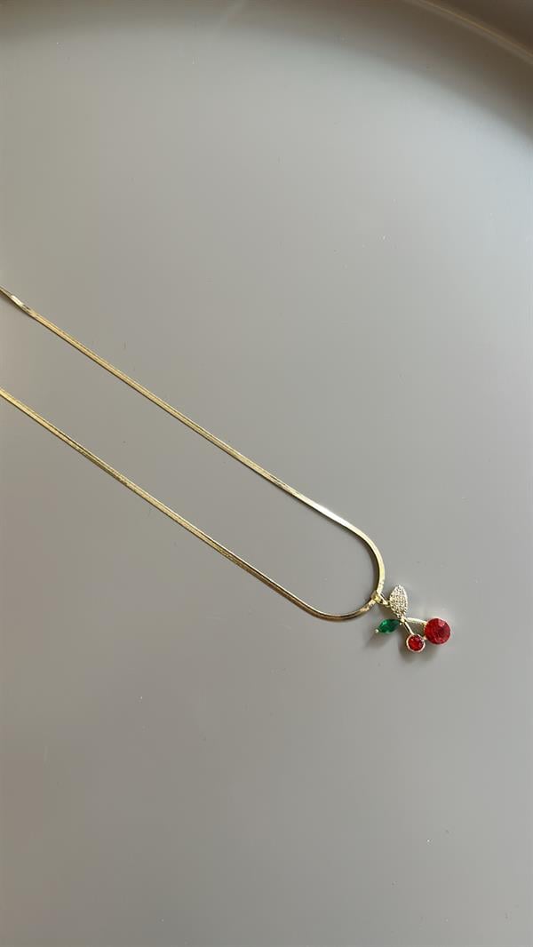 Taşlı Kiraz Kolye - Altın