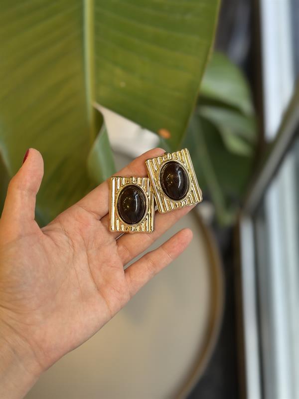 Taşlı Küpe - Siyah