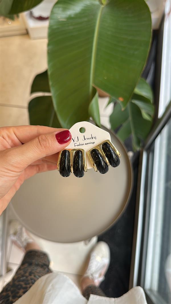 Taşlı Küpe - Siyah