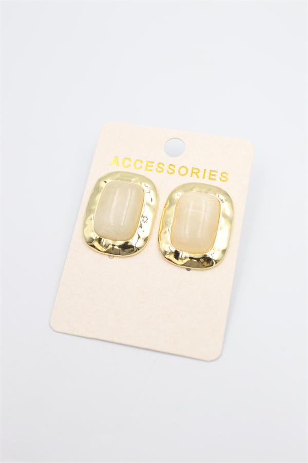 Taşlı Metal Küpe - Krem