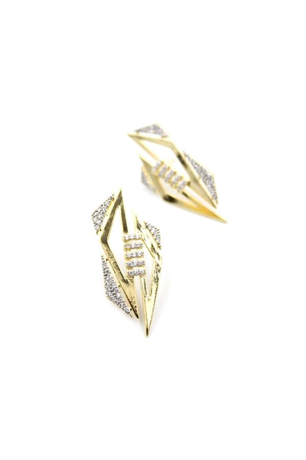 Taşlı Özel Tasarım Küpe - Altın