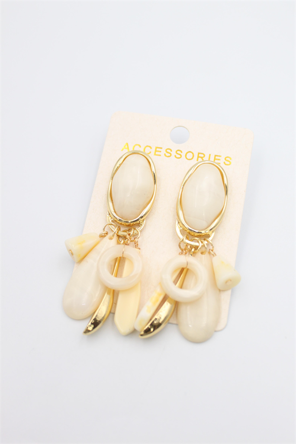 Taşlı Sallantılı Küpe - Krem