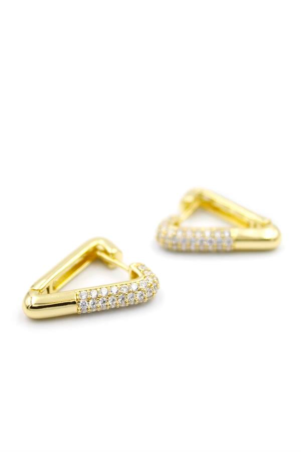 Taşlı Üçgen Küpe - 14K Altın