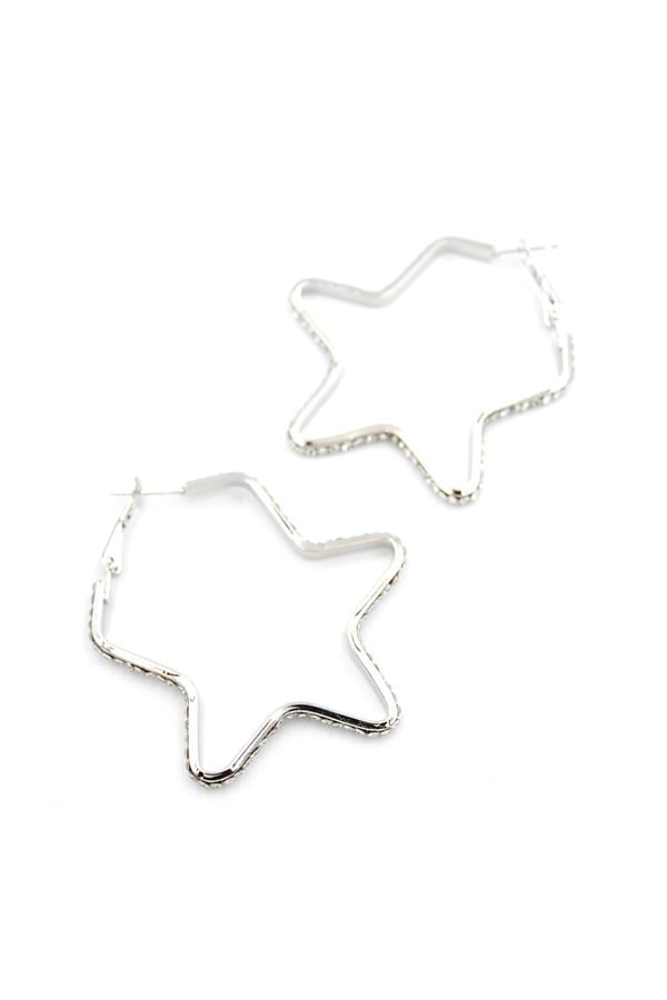 Taşlı Yıldız Halka Küpe - Gümüş